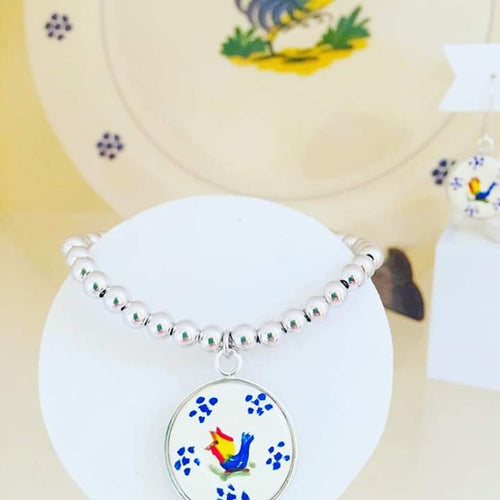 Bracciale in argento e ceramica, dipinto a mano